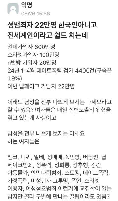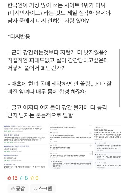 우리 학교도 좀 희망편임 딥페이크 알리는 글 새내기랑 자유게시판에 쓴 사람 있던데 아무도 욕 안하고 걍 추천만 누르더라 그거 보고 다행이다 싶었음