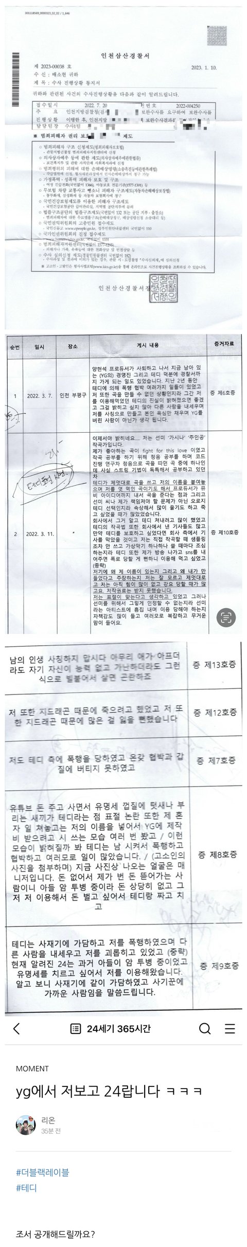 테디 방계 가족까지 이용해서 와이지 돈 횡령 배임 사기쳤다함