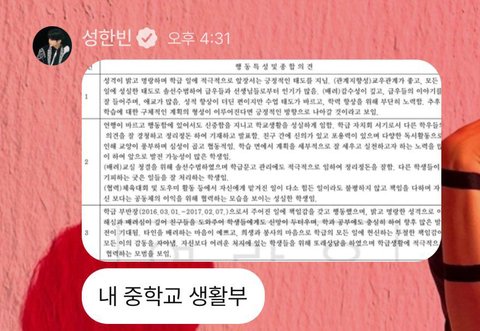 제로베이스원 성한빈 중학교때 생기부 보여줌
