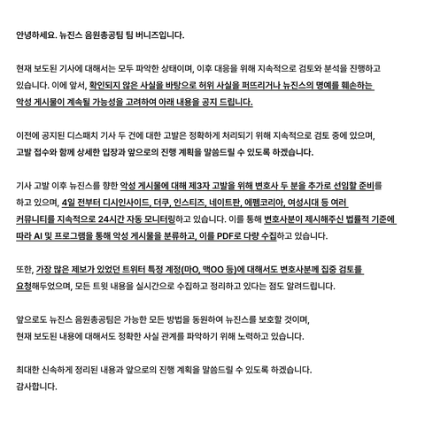 뉴진스 음총팀 3자 고발 공지