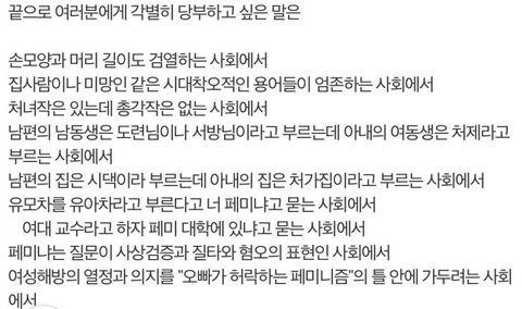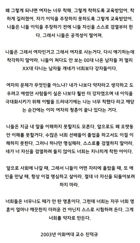 여대를 가야 하는 이유. 공학 대학 교수들 중에서 저런 말을 할 수 있는 남교수가 단 한명이라도 있을까?