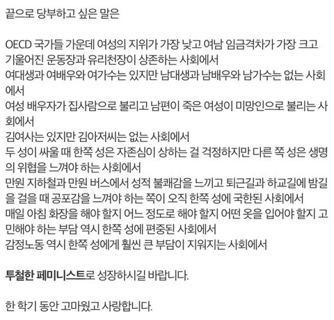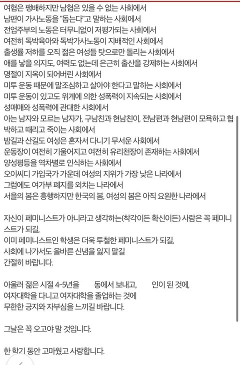 남자교수님께서 쓰신 종강 편지 ㅠㅠ