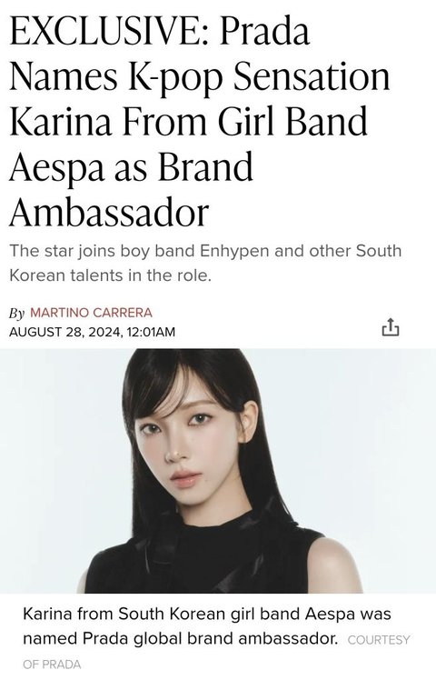 프라다 엠버서더 된 카리나