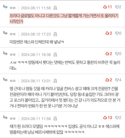 카리나가 프라다 멘다고 아무도 안따라살듯