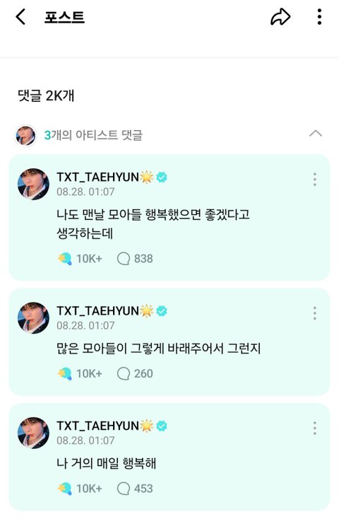 태현이 위버스 댓글