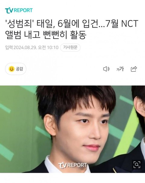 태일이 숨겨서 소속사에서 몰랐을 가능성이 없진 않음. 2022년 8월에 프로 야구선수 한명도 성범죄로 검찰에 송치됐거든? 근데 이걸 구단, 가족, 에이전시 등한테 계속 숨기고 몰래 경찰 조사 받음 2023년 3월경엔 아예 구속영장실질심사, 심문까지 몰래 받고 있었는데 구단이랑 가족, 에이전시가 사건 제대로 인지한건 저거 다 끝나고 2023년 3월23일이었음ㅋㅋㅋ