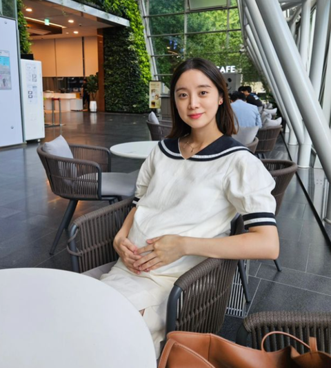 사진 속 우혜림은 살짝 튀어나온 배를 소중히 안은 채 미소짓고 있다. 또 다른 사진에는 나란히 앉아있는 우혜림과 신민철의 모습이 담겨있기도 했다.
