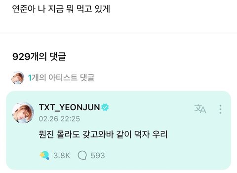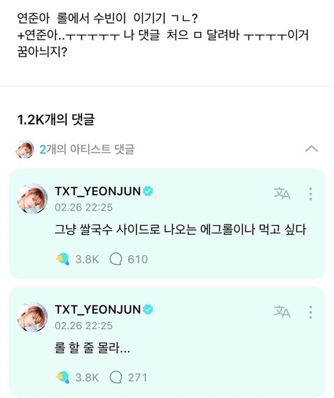 돌판에 뺏긴 먹방계의 인재라는 남돌 = 투바투 연준