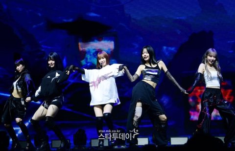 그룹 르세라핌(LE SSERAFIM/김채원, 사쿠라, 허윤진, 카즈하, 홍은채)이 29일 오후 서울 광장동 예스24 라이브홀에서 열린 미니 4집 ‘크레이지’ (CRAZY) 발매기념 쇼케이스에서 신곡을 공개하고 있다. 2024.8.29
