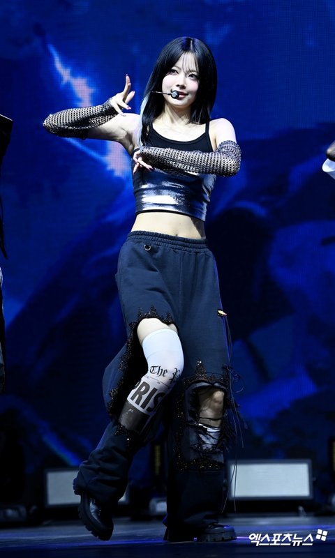 르세라핌 홍은채가 타이틀곡 'CRAZY' 무대를 펼치고 있다.