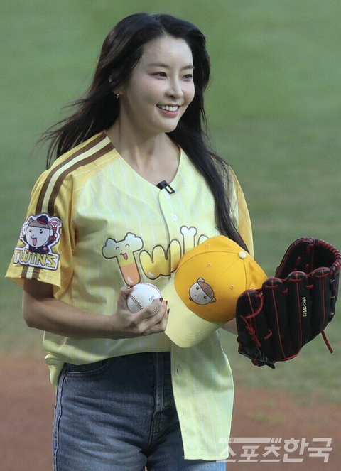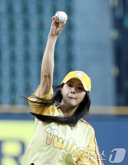 배우 정유미 29일 저녁 프로야구 서울 잠실야구장 서울LG트원스 홈경기 시구 시타 모습