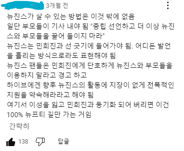 내가 3개월 전에 뉴진스 한테 썩은 동아줄 잡지 말고 키나 하라고