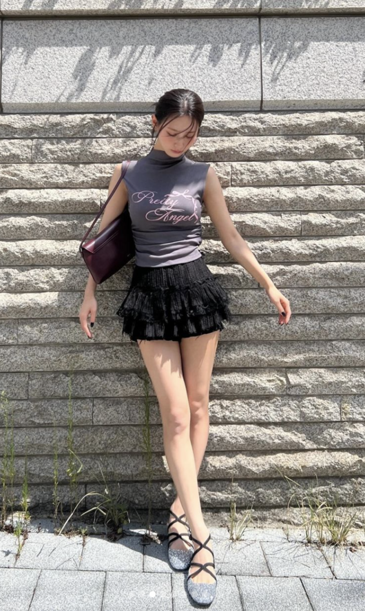 미연 인스타그램또 이날, 미연은 셔링이 포인트된 검정색 치마와, 은빛 펄이 반짝거리는 발레리나 슈즈를 함께 매치해 새침한 발레리나같은 패션을 선보였다. 또, 체리브라운 빛깔의 명품 브랜드 가방을 함께 착용하여 시크하면서 우아한 매력을 드러내기도 했다.