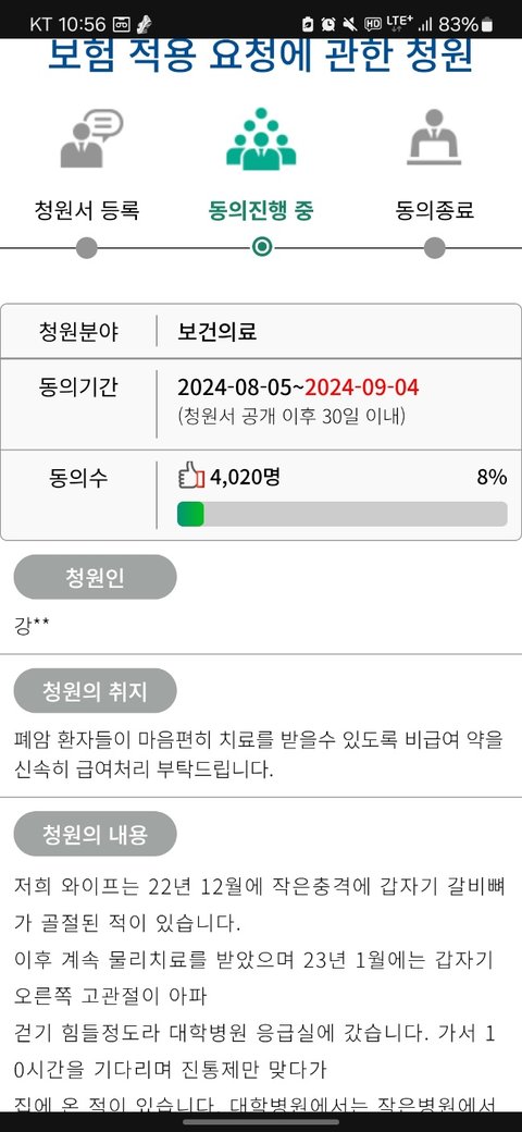 환자들의 이중부담을 줄여주시길 요청하며 국민동의 청원을 올렸습니다