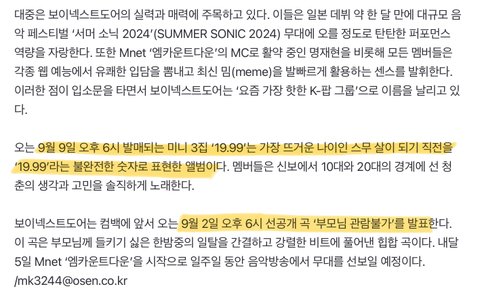 9월 2일 월요일 선공개곡 “부모님 관람불가”래!!