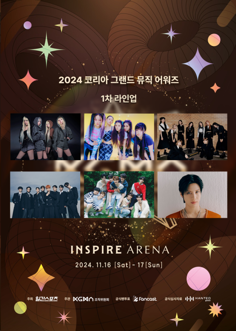 28일 KGMA 조직위원회는 오는 11월 16일과 17일 인천광역시 중구 운서동 인스파이어 아레나에서 개최되는 제1회 코리아 그랜드 뮤직 어워즈의 1차 라인업으로 뉴진스와 니쥬, 에스파, 에이티즈, 제로베이스원, 태민(이상 가나다순)을 발표, K팝의 성대한 페스티벌을 예고했다.