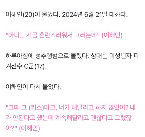 이해인과 c의 연락인데, 성적 불쾌감을 느낀 성추행은 아닌 것 같지?