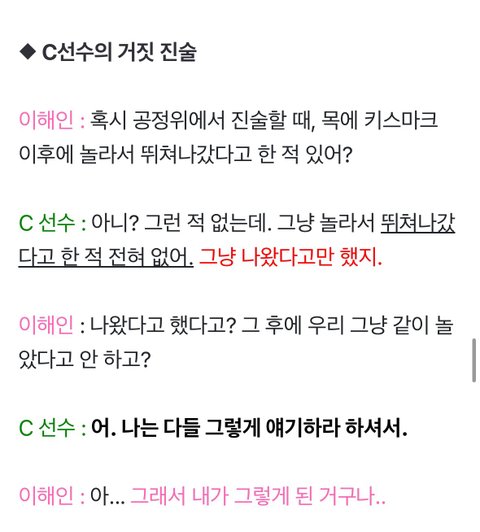 이해인과 c가 소속사가 같아서 대충 말을 맞춰서 조사를 받게 하려고 했음. 이해인은 그대로 조사를 받았고,