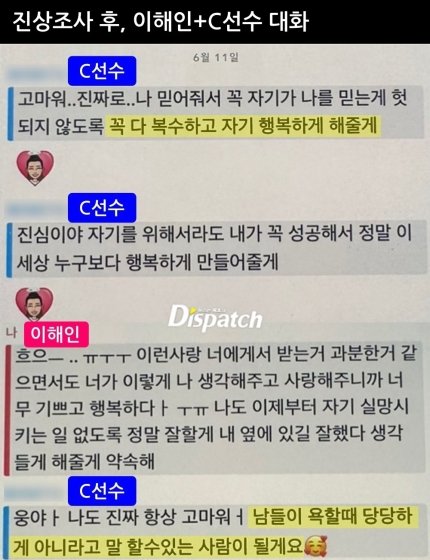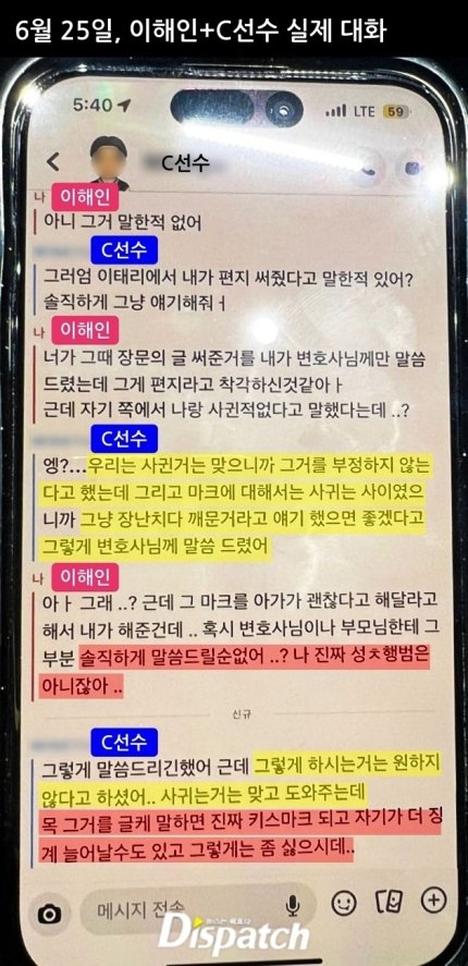 b선수는 c에게 보낸 적이 없다고함