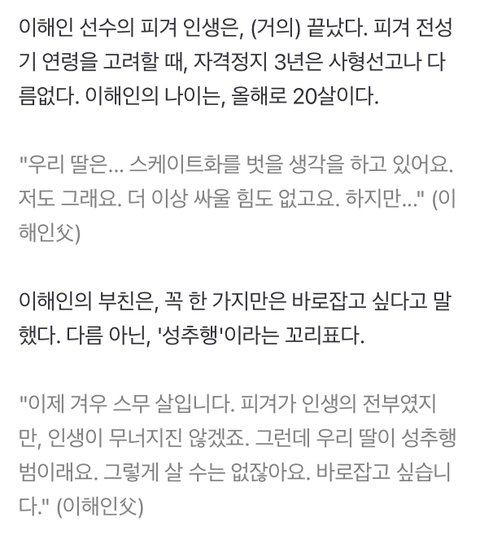 마지막은 이해인선수 아버지 인터뷰