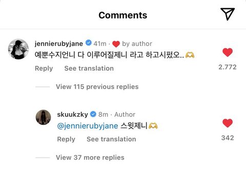 수지 인스타에 댓글단 제니(+수지 답댓)