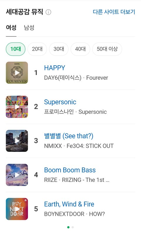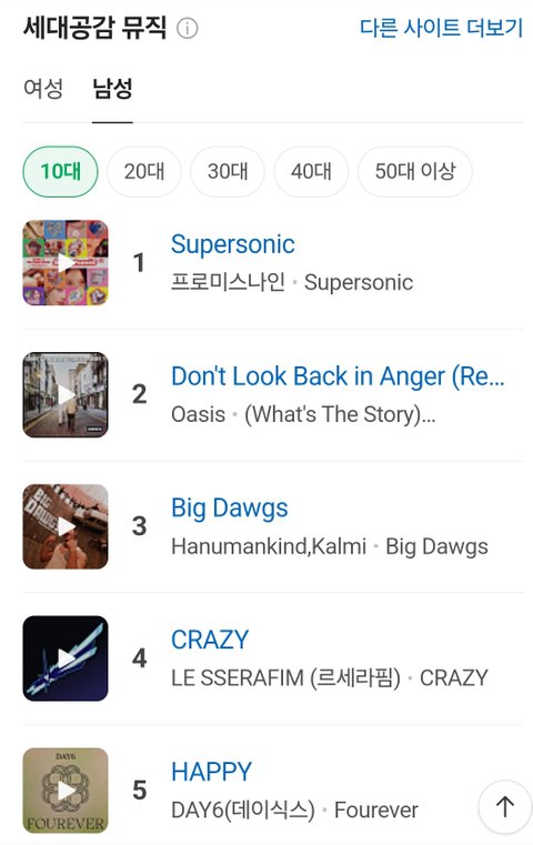 10대 20대가 가장 많이 듣는 음악