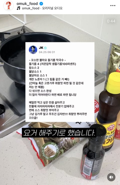정구기 생일 기념 들기름 막국수 해먹는 영상 올라옴ㅋㅋ