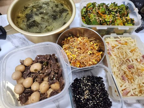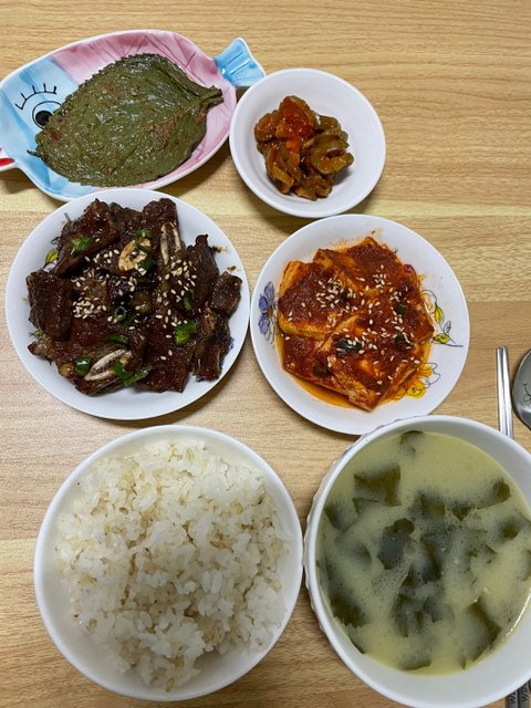 요것도 다 제가 만든 반찬이에요 깻잎찜, 오이지무침, La갈비, 두부조림, 미역국 !!