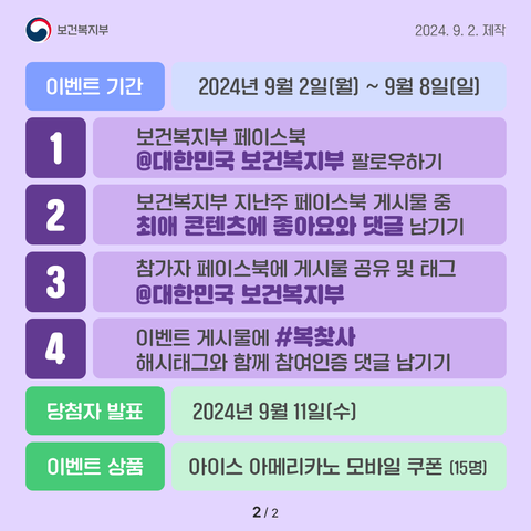 보건복지부에서 매주 진행하는 복찾사(보건복지를 찾는 사람들) 이벤트 소개드립니다