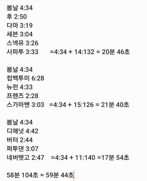 페스타 때 발매된 팬송+최근 발매 곡인데다 곡 길이도 2분 47초라 더해도 1시간 안넘게 59분 44초로 끝나서 이렇게 함