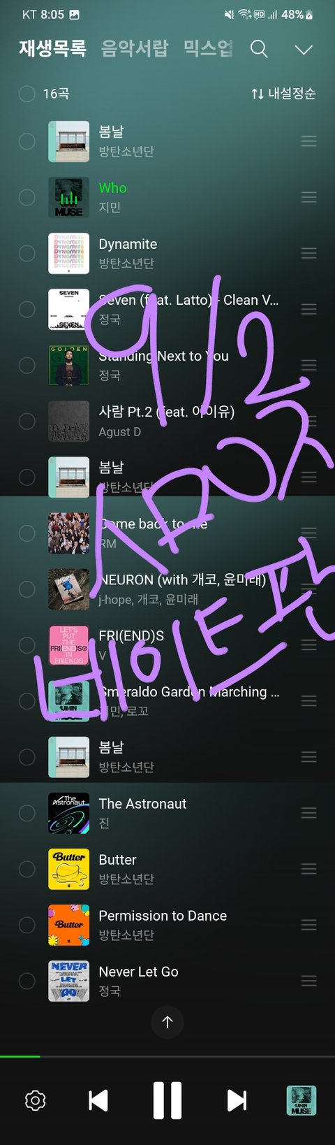 오랫동안 단체곡으로 돌린 버터, 퍼투댄 넣었음