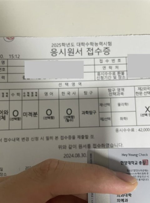 한양의대생인데 수능 접수함