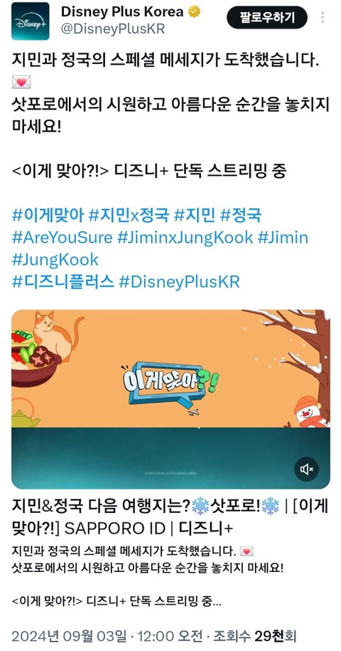 https://x.com/DisneyPlusKR/status/1830621714767548581?t=nnhT7xbGi5AF5FOXSf4FCQ&s=19
