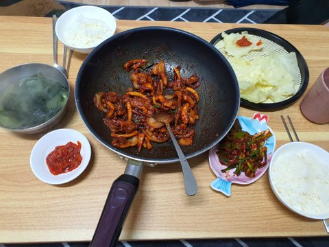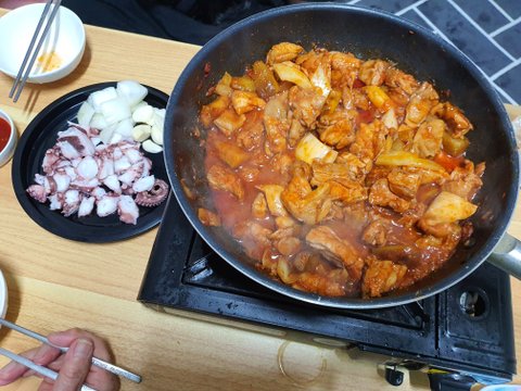 닭갈비랑 문어숙회랑 해서 먹었어요!!
