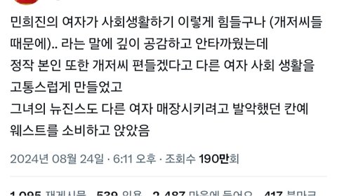 뉴진스 민지 포닝으로 고민 많아서 힘들었다며