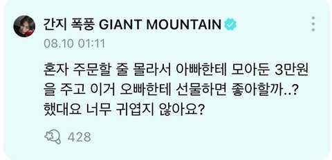 혼자 주문할 줄을 몰라서 아빠한테 모아둔 돈 드리고 오빠가 좋아할까 물어보는 찐 아기...ㄱㅇㅇ