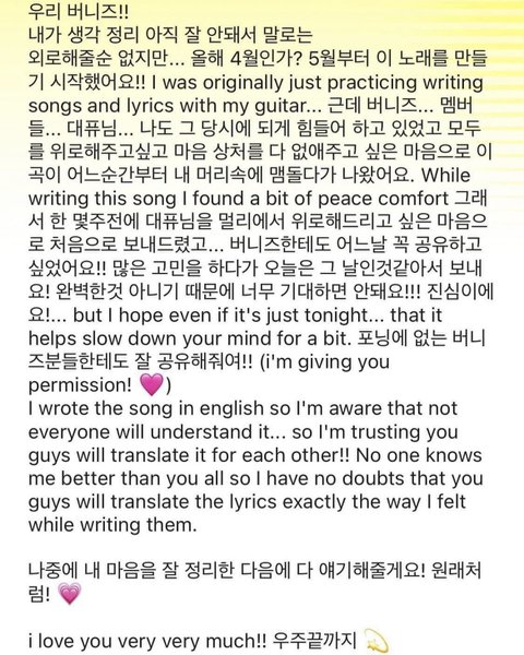 상태메세지에 쓴걸 어떤 팬 분이 해석한 겁니다.