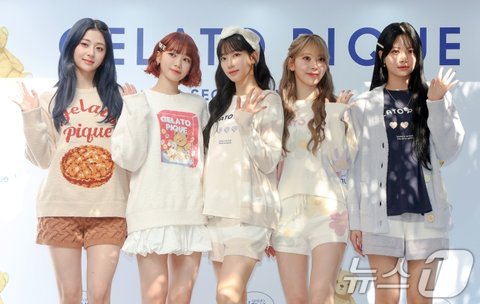 (서울=뉴스1) 김진환 기자 = 걸그룹 르세라핌의 허윤진(왼쪽부터), 김채원, 카즈하, 사쿠라, 홍은채가 3일 오후 서울 용산구 한남동 젤라또 피케 그랑 메종 한남에서 열린 아이스크림 브랜드 '젤라또피케' 한국 론칭 기념 오픈파티 행사에 참석해 포즈를 취하고 있다. 2024.9.3/뉴스1김진환 기자(kwangshinQQ@news1.kr)