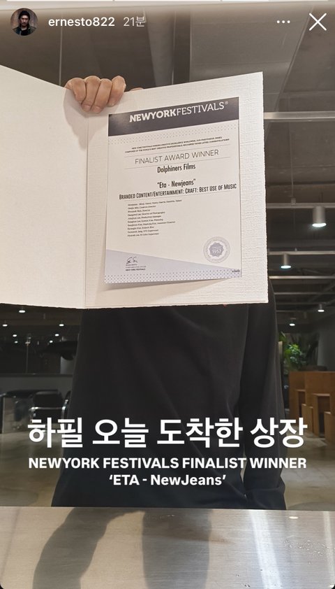 뉴진스 eta로 뉴욕 페스티벌 무슨 상 받앗나봄ㅋㅋㅋㅋ