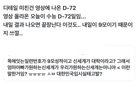 아티스트 필름 그거 보고 팬들이 분석? 한거 봤는데 ㅁㅊ네 컨셉 19.9세라 들어서 나도 고삼인지라 기대된다 생각하고 있었는데 이렇게까지 진심으로 말아줄줄이야 맨날 엠지엠지 그룹했는데 진짜 엠지함 고딩들 나포함 내일 모고 화이팅