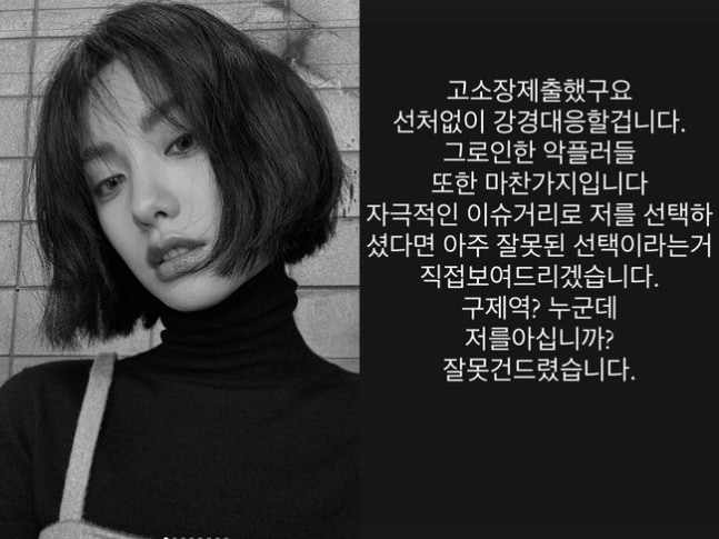 지난 24일 나나는 개인 채널을 통해 “고소장 제출했다. 선처없이 강경대응할 거다. 그로인한 악플러들 또한 마찬가지다. 자극적인 이슈거리로 저를 선택하셨다면 아주 잘못된 선택이라는 거 직접 보여드리겠습니다”라며 “구제역? 누군데 저를 아십니까? 잘못건드렸습니다”라고 글을 게재했다.