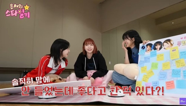 이날 1년 3개월만에 '은채의 스타일기'에 재출연한 르세라핌 김채원, 카즈하는 "은채 프로다. 아까 들어올 때 프로의 말투로 변하더라"라고 입을 모았다.