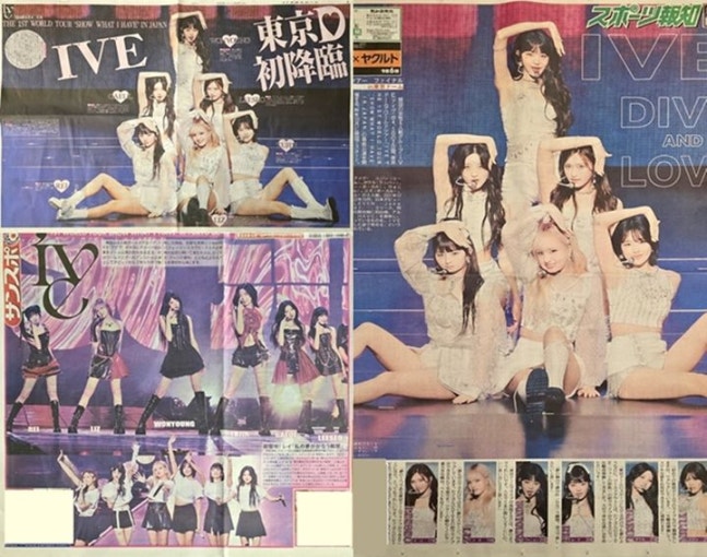 주변 편의점 등에 쌓인 이 신문들은 "아이브 도쿄 첫 강림!", "아이브가 다이브(아이브 팬클럽명)와 함께 이틀간 역사적인 공연을 만든다", "아이브 레이 어릴 적 꿈 이루다" 등이라고 쓰며 아이브 활약상을 조명했다.