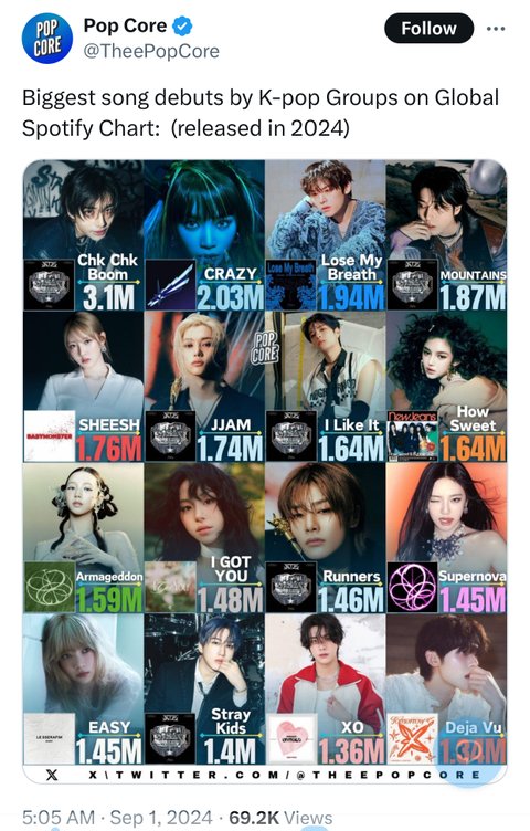 1위: Stray Kids Chk Chk Boom: 3.96M