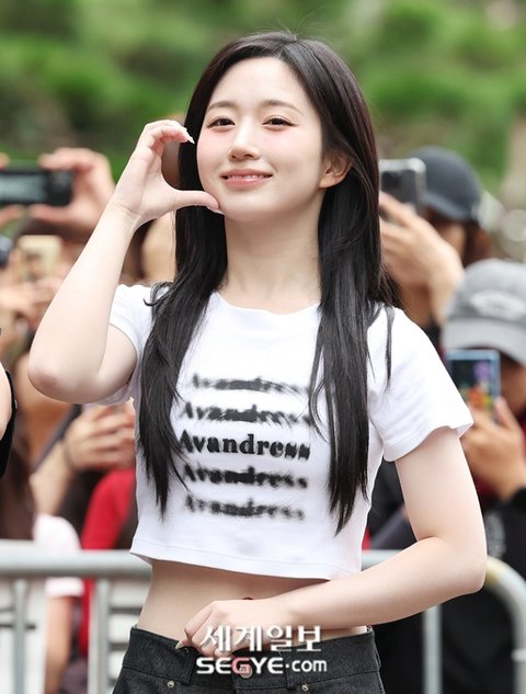 그룹 엔믹스 해원이 6일 오전 서울 영등포구 여의도동 KBS 신관에서 진행된 KBS2 '뮤직뱅크' 리허설에 참석해 취재진을 향해 포즈를 취하고 있다.