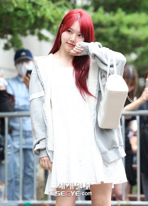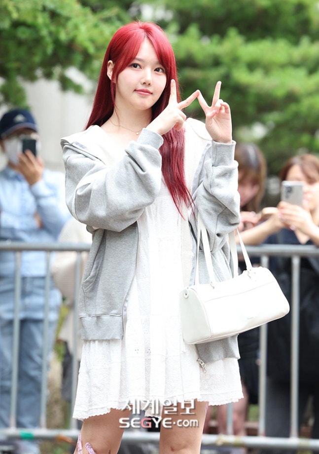 가수 예린이 6일 오전 서울 영등포구 여의도동 KBS 신관에서 진행된 KBS2 '뮤직뱅크' 리허설에 참석해 취재진을 향해 포즈를 취하고 있다.한편, 이날 '뮤직뱅크'에는 ARrC, DRIPPIN, LE SSERAFIM, LUN8, NMIXX, NOWADAYS, 싸이커스, 위원, YOUNG POSSE, ZEROBASEONE, 방예담, 오마이걸 등이 출연한다.