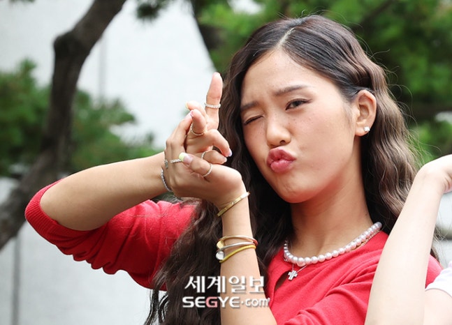 그룹 오마이걸 미미가 6일 오전 서울 영등포구 여의도동 KBS 신관에서 진행된 KBS2 '뮤직뱅크' 리허설에 참석해 취재진을 향해 포즈를 취하고 있다.