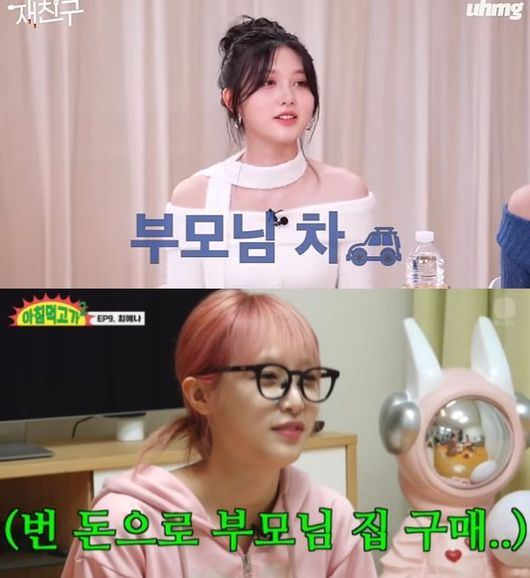 또한 아이즈원 출신 가수 최예나는 '아침먹고가2'에 출연, 솔로 전향 후 첫 정산금의 행방에 대해 "작년에 처음으로 가족들이랑 다 같이 해외여행 가서 올해도 갔다 왔다"고 말했다. 장성규는 "검색하다 보니 본가도 양평으로 이사 갔다던데 그것도 예나 양이 시원하게 해드린 거냐?"고 물었고, 최예나는 "그렇다"고 답했다.