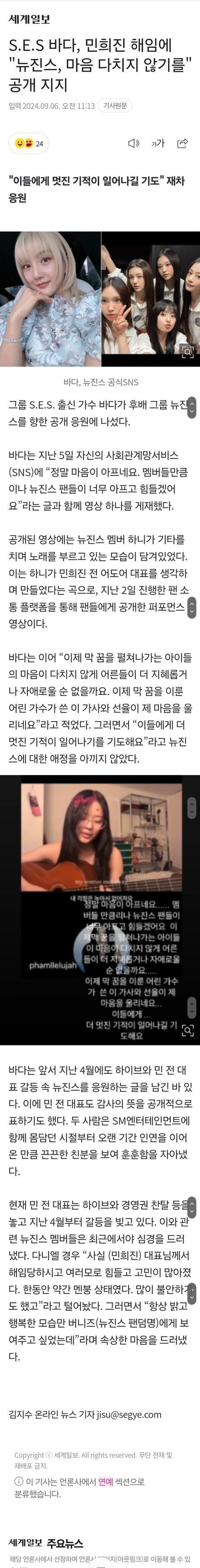 ses바다는 슈는 빼더니 민희진기타등등은 계속 지지ㅋㅋ