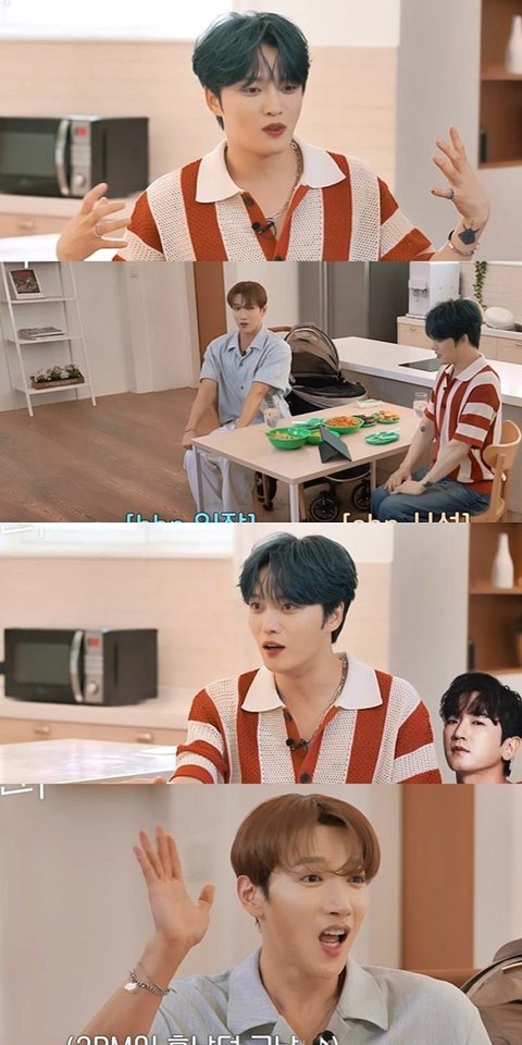 김재중은 “과거에 2PM 친구들이 키도 크고 몸도 커서 무서웠다”면서 “한번 식당에 들어왔는데 거대한 친구들이 딱 앉아 있는데 무섭더라. 그런데 내가 일어나기도 전에 먼저 나갔다. ‘나랑 같이 있는 게 싫구나’하고 생각했다”고 서운한 점을 토로했다.